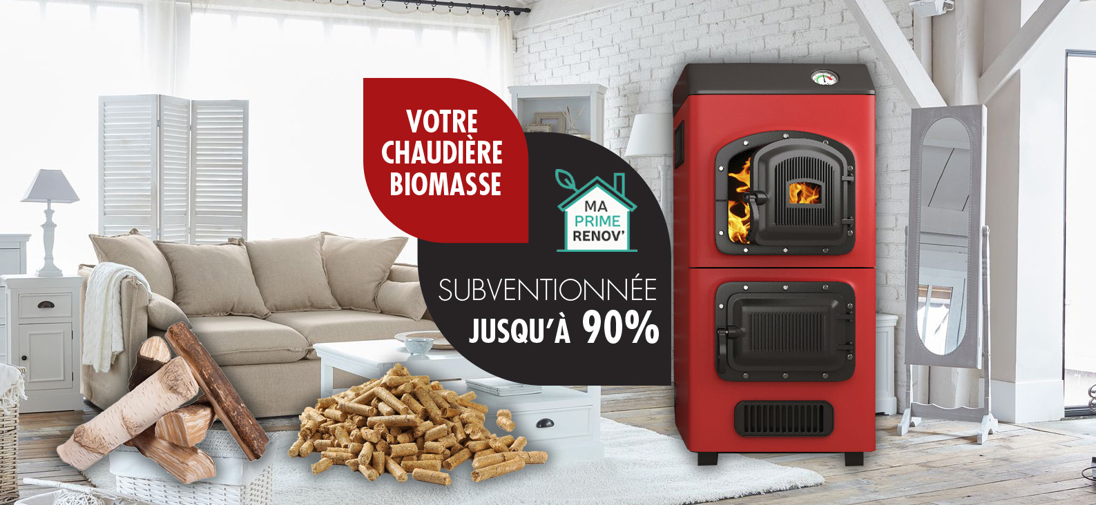 * Offre réservée aux propriétaires. Une chaudière biomasse nécessite un circuit d'eau chaude pré-existant et ne peut donc pas être installé en remplacement de chauffage à l'électricité.